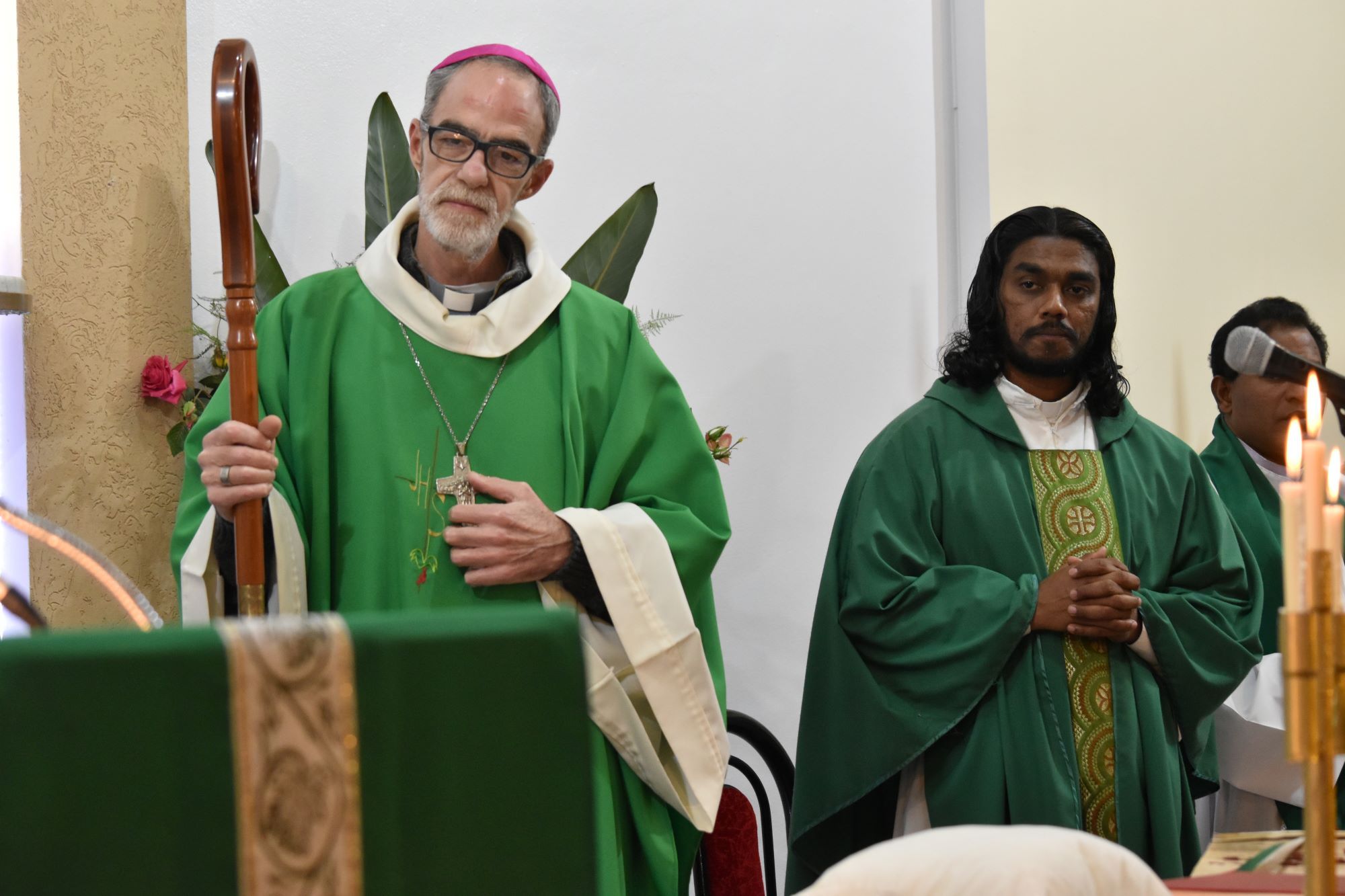 En una misa que presidió el obispo auxiliar de la diócesis de Lomas de Zamora, monseñor Ignacio Medina, el reverendo padre Jacob Thomas CMI inició esta tarde su ministerio de administrador parroquial de Sagrado Corazón de Jesús y Nuestra Señora del Rosario de San Nicolás (El Jagüel).
