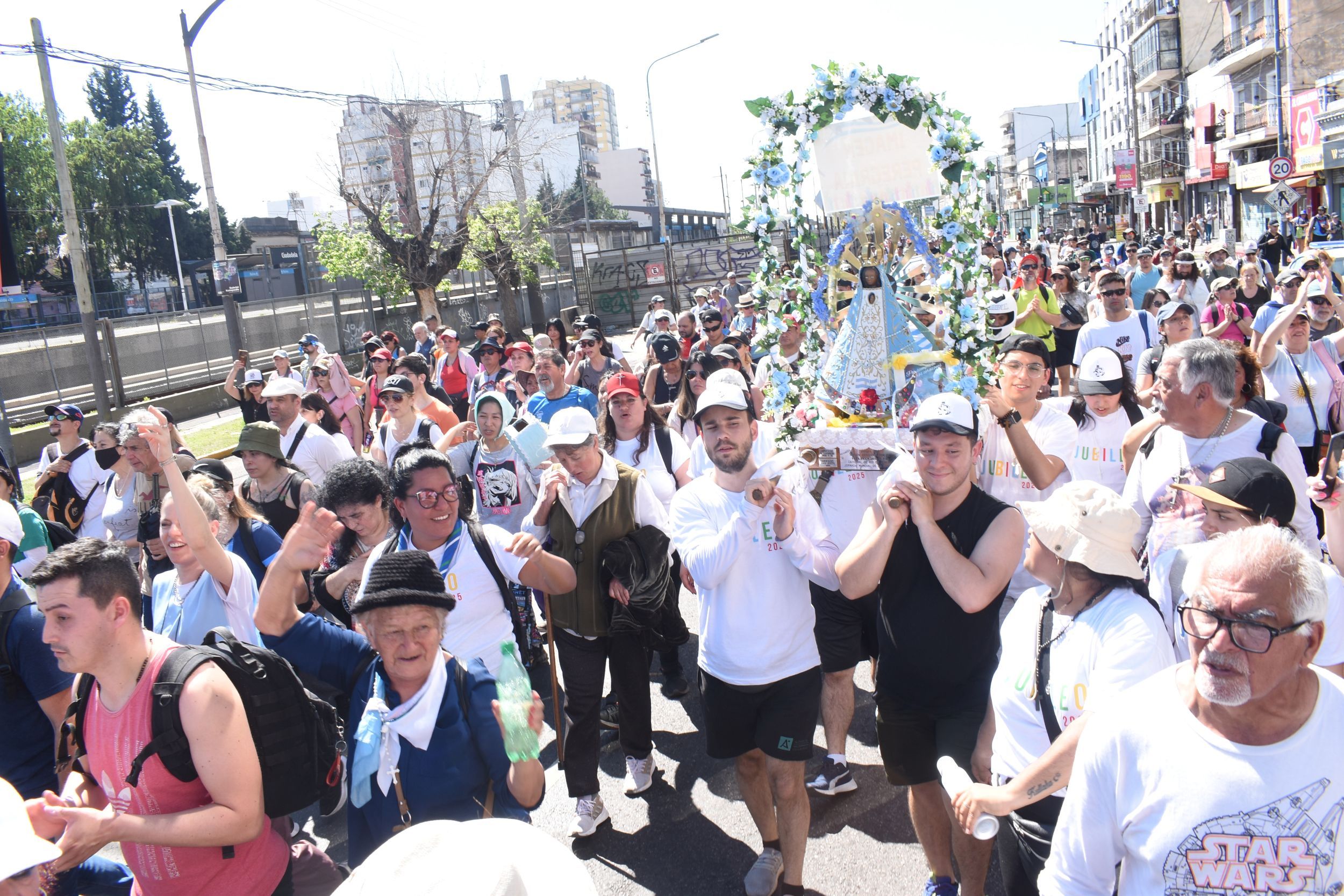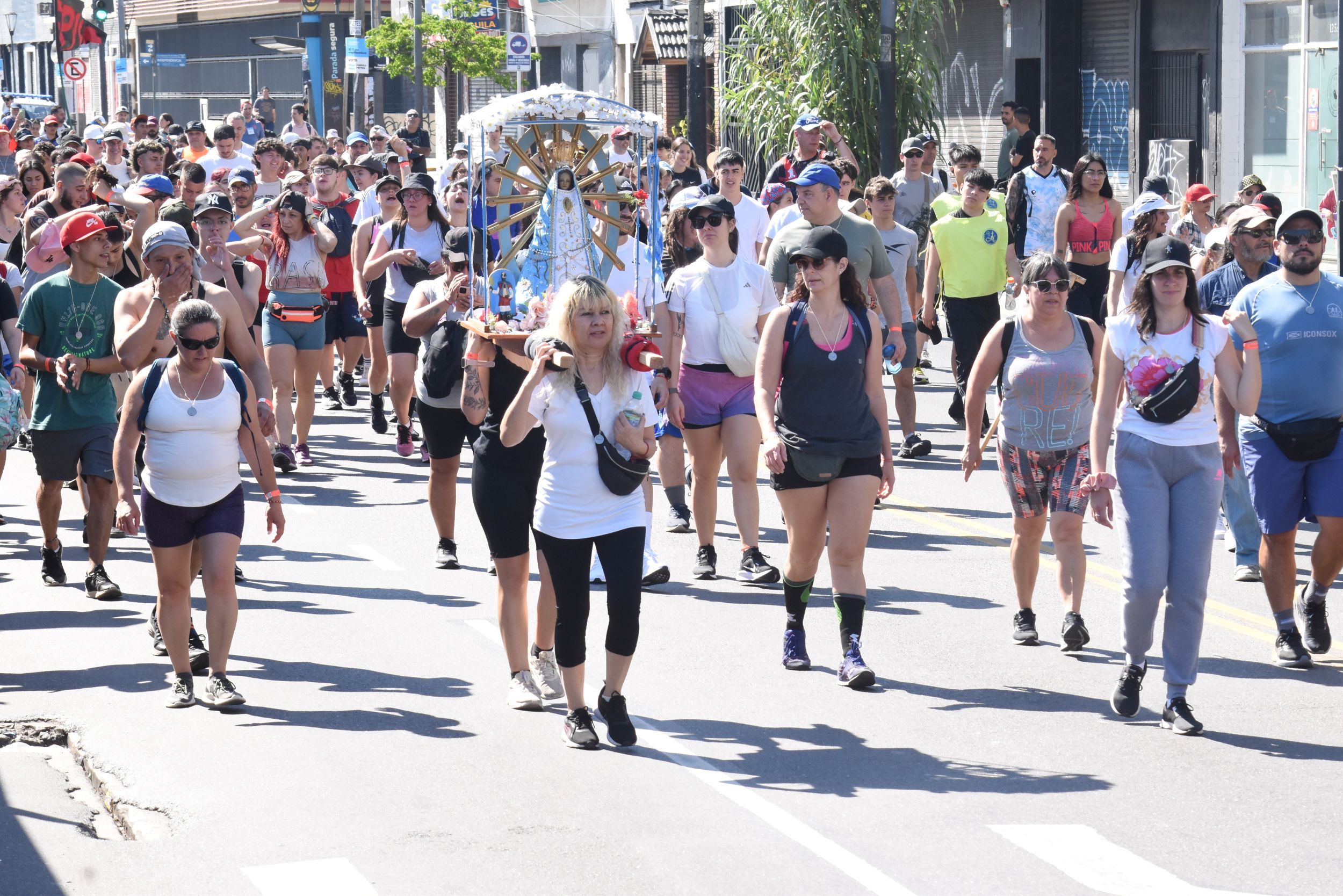 Aunque los peregrinos inician su caminata en diferentes momentos del día, la imagen cabecera de la Virgen de Luján partió a las 10 desde el santuario de San Cayetano de Liniers. Son cerca de 60 kilómetros hasta la basílica de Nuestra Señora de Luján.