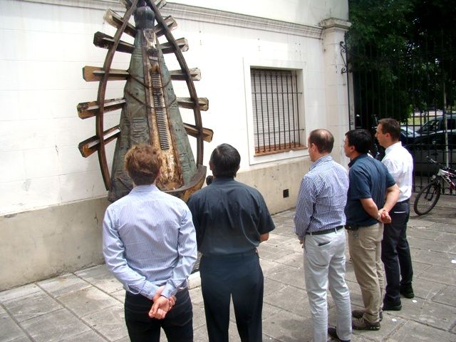 El Intendente de Lomas de Zamora, Martin Insaurralde, y el párroco de la catedral Nuestra Señora de la Paz, presbítero Hugo Barrios, rezaron hoy ante la escultura de la Virgen de Luján -una obra de 3,5 mts. de altura, hecha con desechos metalúrgicos por el artista Alejandro Marmo junt...