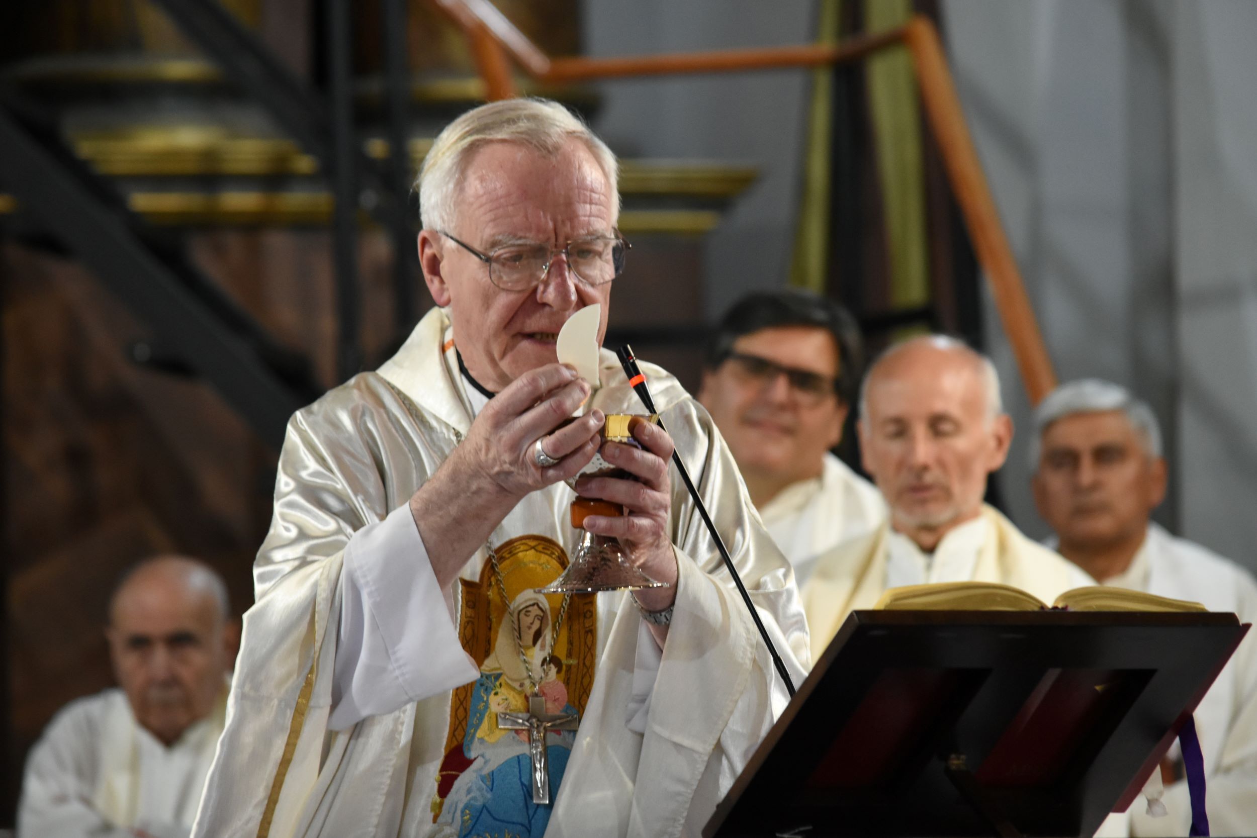 En la catedral Nuestra Señora de la Paz, monseñor Gustavo Arturo Help, obispo emérito de Venado Tuerto y sacerdote surgido de la diócesis de Lomas de Zamora, celebró hoy con una misa los 50 años de sacerdocio.