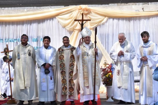 El obispo diocesano, monseñor Jorge Lugones SJ, presidió una misa en la que el presbítero Sergio Fochesatto inició su ministerio de administrador parroquial de Nuestra Señora de Loreto (Barrio Uno, Ezeiza).