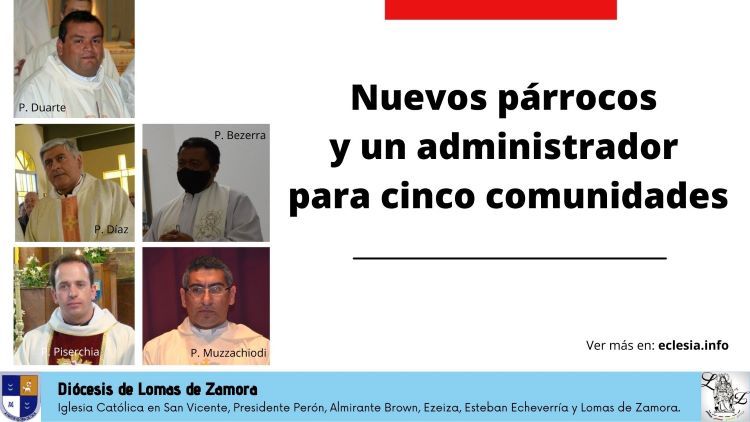 El obispo diocesano, monseñor Jorge Lugones SJ, nombró cuatro párrocos y un administrador parroquial para cinco comunidades de la diócesis de Lomas de Zamora.