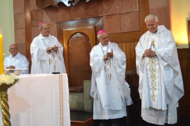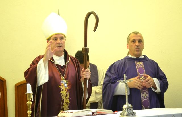 Ante el obispo diocesano, monseñor Jorge Lugones sj, el presbitero Marcelo Romano inició esta noche, en el primer Domingo de Adviento, su ministerio de administrador parroquial de Nuestra Señora de Lourdes (Claypole).