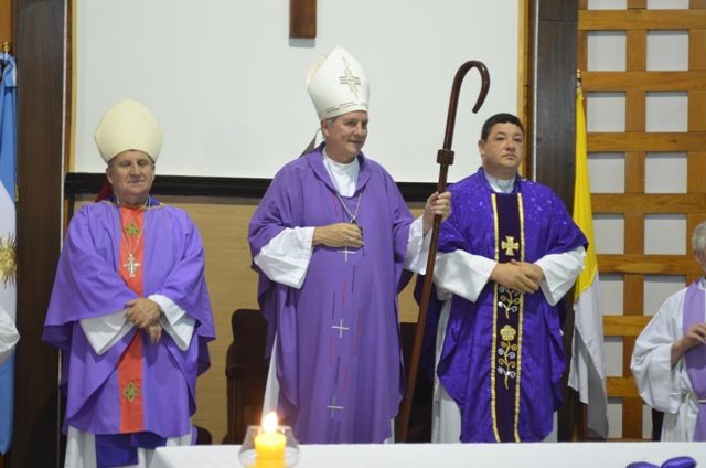 Ante el obispo diocesano, monseñor Jorge Lugones sj, el presbitero Marcelo Romano inició esta noche, en el primer Domingo de Adviento, su ministerio de administrador parroquial de Nuestra Señora de Lourdes (Claypole).