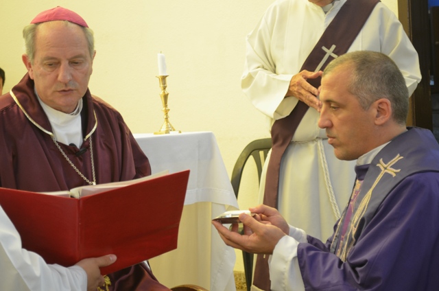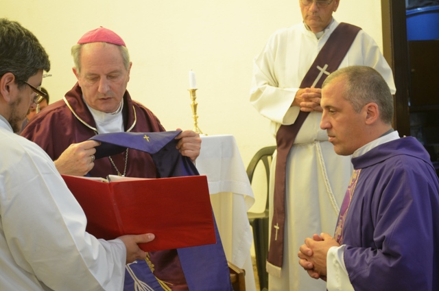 El obispo diocesano, monseñor Jorge Lugones sj, presidió hoy una misa en la que el presbítero Alberto Tamborino recibió el oficio de párroco de Asunción de María Santisima (Temperley).