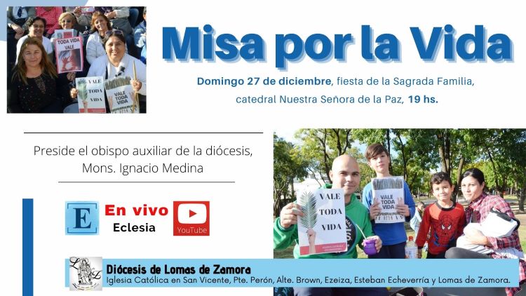 Este domingo 27 de diciembre -fiesta de la Sagrada Familia-, el obispo auxiliar de la diócesis, monseñor Ignacio Medina, presidirá la “Misa por la vida”, en el marco de celebraciones y gestos promovidos por la Conferencia Episcopal Argentina para rezar “por la vida no nacida” en el contexto del debate legislativo sobre la legalización del aborto.